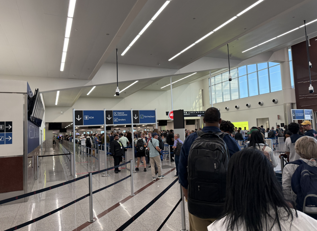 (中樂透一樣就是飛到TSA罷工最嚴重的城市。機場安檢排了2個半小時)