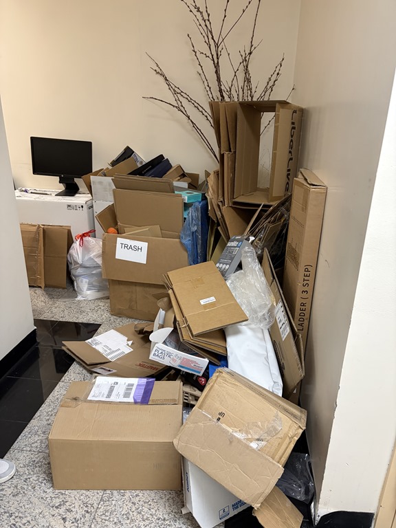 辦公室入口終於清空。雖然很累但員工們難掩興奮的心情。沒有人想在垃圾場工作!