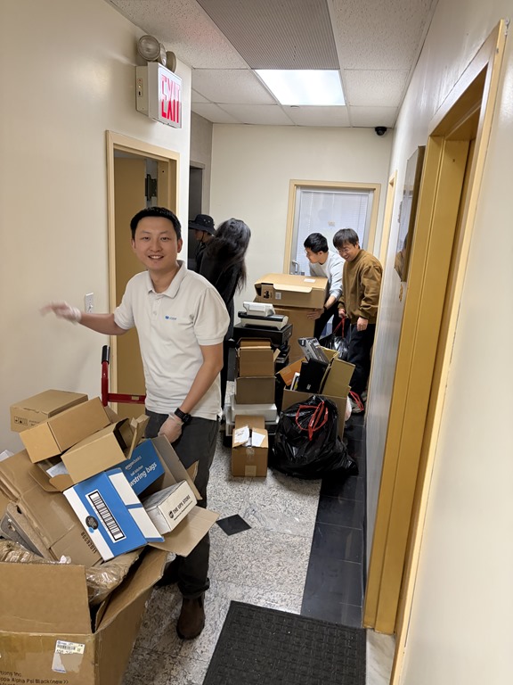 個人區域不用太久,大部份員工很快往公共區域整理過去。二十個人走動在無數的紙箱間。