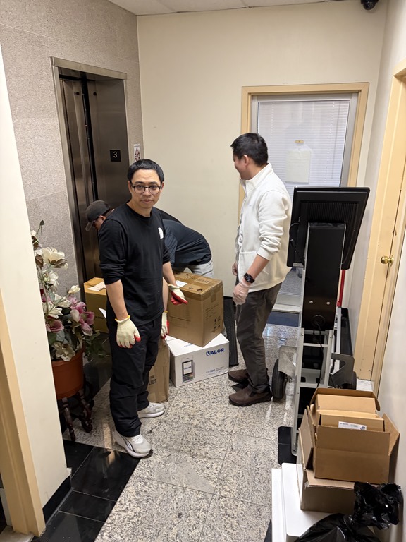 幸好辦公室在三樓。大東西可以搭電梯,小東西至少可以走的搬下樓。