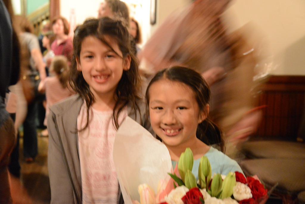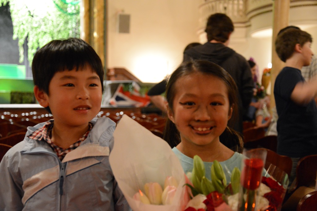 千辛萬苦把小姐送上床,已經十一點。我也累的想哭,真心覺得這種行程實在過頭 。但,我沒有辦法不去看到,孩子們站在舞台上,那雙閃亮的眼睛,好像唱多久都不會累似的。老師們的嚴格訓練,孩子們即使看到家長也面無表情,全心投入在自己的角色中。生動的表情、自然的動作、專業的走位…每個孩子都像專業的百老匯的演員,兩個小時的演出沒人出錯、沒人忘詞。宇眉說,不是我們不愛你,但站在台上就是不能和爸媽揮手!我很敬佩這群老師的精神,也尊重他們專業的態度,移植到孩子身上完全不馬虎。