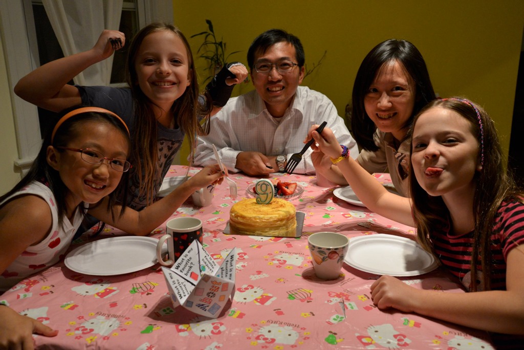 九歲,四年級,已經快想不起來,這十年是怎麼過的,快樂、痛苦…什麼樣的回憶都有。除了宇眉的成長,親愛的老公和我經歷了兩次生離死別、搬回台灣再回美國、家園受到百年一見的颶風摧殘…一關比一關艱難痛苦。十年歷練,我學會了人生的高低起伏,它不會一路順遂,所以我們也無需怨天尤人。低潮來臨時,面對它、接受它,處理完後便放下它。一味的拒絕和自欺欺人,是沒有幫助的。
