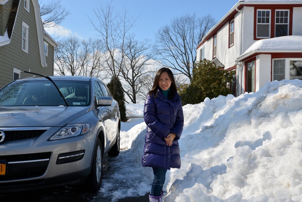 和我們車道相接的鄰居是日本阿嬤和女兒。阿嬤和我們的媽媽年紀不相上下,女兒和我們姊妹年紀也與我相仿,就連孫女都只和宇眉一年之隔。大雪過後,向來是親愛的老公和隔壁鄰居女兒,併肩作戰和大雪奮鬥。我不知為何被灌上背不好之名,所以不用出門剷雪。