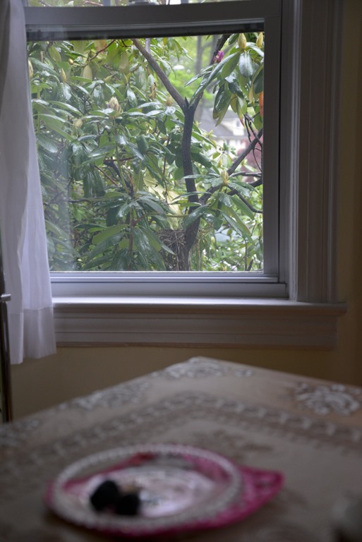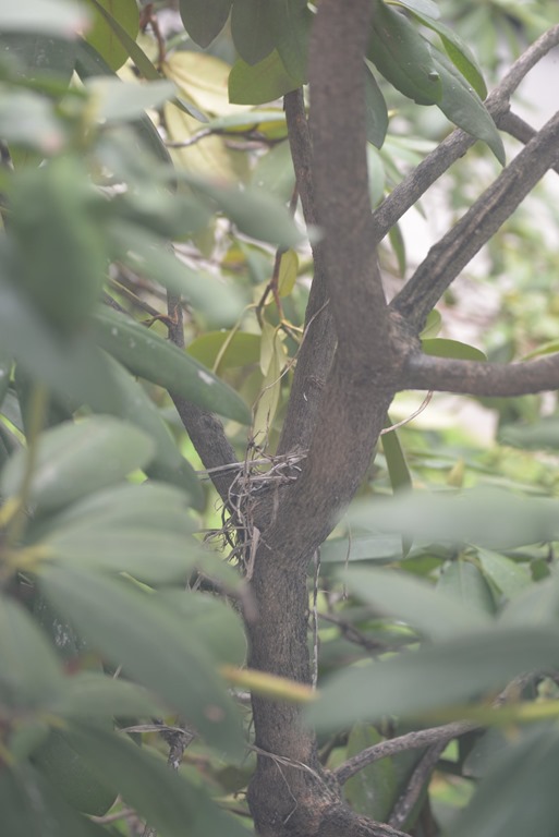 我想,可能是因為我終日與他們為伍,所以特別興奮,有一種孩子回娘家的喜悅。趁著鳥媽媽再出去找尋枯枝的空檔,我爬的老高,把紗窗推開,所以我們和鳥巢的距離,只剩一扇玻璃窗。