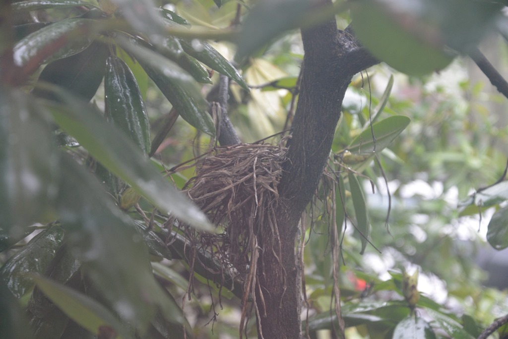 二十四小時過去,已經完完全全看的出,是一個漂亮的鳥巢。不過,眉眉喊著,但媽咪,還沒有中間的凹凹啊!眉眉也是專家,去年我們家的兩個鳥巢、三窩小鳥,給她上了非常完整的知更鳥課。