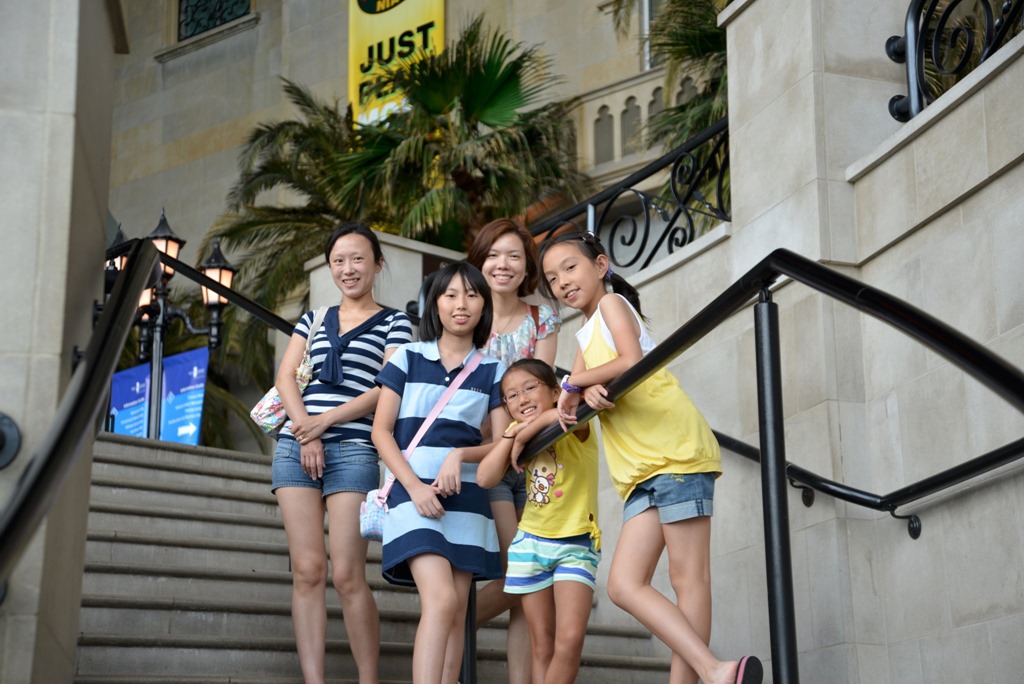 但,長大後的旅遊我覺得對孩子的意義相當大,當然,目的絕不是讓她們愛上享受美食和高級飯店。好比多看些古老的建築,我覺得即使沒有美術能力也可以培育出鑑賞能力。眉眉和我一樣,有點像手殘的藝術家,雖然我們的音樂表現相當出色,但藝術卻非常不行。可是,眉眉對顏色有當的敏感度,她有能力在千百種商品的店翻出自己喜歡的衣服、帽子、飾品來搭配…