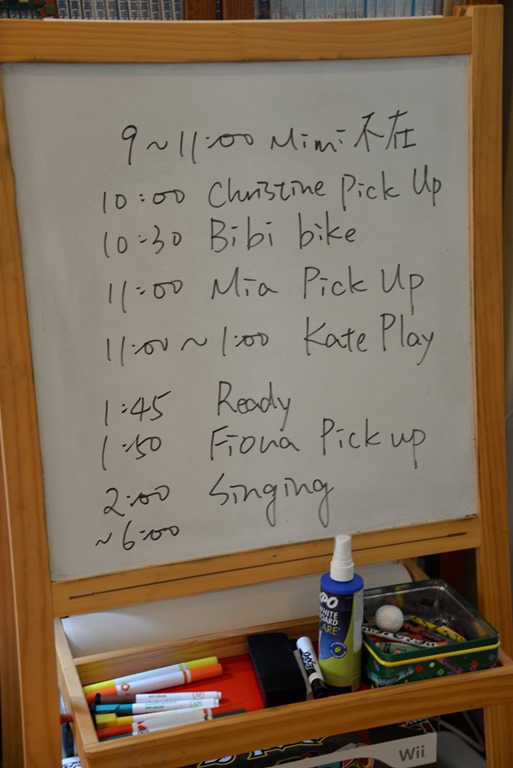 就因為每天的行程都不同,所以我向來在客廳立一面白板,上面細數了今天的進出時間,否則別說孩子搞不清今天的行程,我自己都會忘記該做的事!