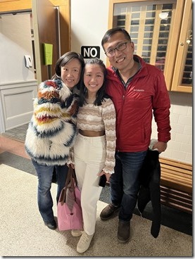 他被潑了一桶冰水後,不知多失望傷心的掛上電話。我平常溫柔可人,但當下一心只想安全把女兒和自己「趕快」送到機場,哪還有心情安慰他?而且,我一直叫宇眉不要跟我來接機,她明明才剛結束採排,累的也是說不出話,明天又要出遠門、行李根本還沒收、加上學校功課、還有一個4月1就要申請截止的獎學金作文要寫。這事我講來就一肚子火。因為知道我們家別人不懂的忙碌,所以我從三月一號就提醒宇眉,趕快開始,三月底我們沒心情也沒時間申請獎學金。小姐就是孩子!總以為自己時間很多、也看不了那麼遠後的時程表,最後通通塞在這個星期,又貪心的想在第一時間看到她爸!