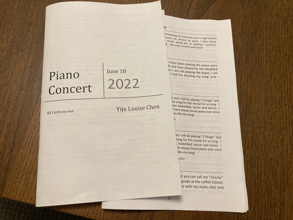 事前準備工作更是不用說的繁瑣,孩子們的曲目表和自我介紹,我也不懂自己為何不能一般化,學別的老師一張紙上面寫上誰彈什麼歌就好?簡單一百倍。我偏要做成一本簡介,觀眾讀起來多有意思?順便把親愛的老公和自己整死…